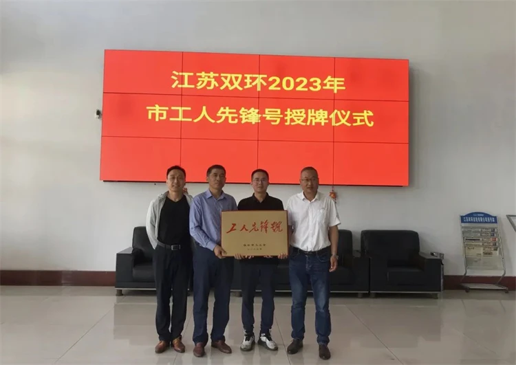 6月8日上午,淮安市总工会主席高辉一行来到江苏双环 蜜桃传媒,为江苏双环二工厂生技科举行了“淮安市工人先锋号”授牌仪式,江苏双环工会副主席纪文杰,二工厂生技科科长黄东林等参加授牌仪式。
