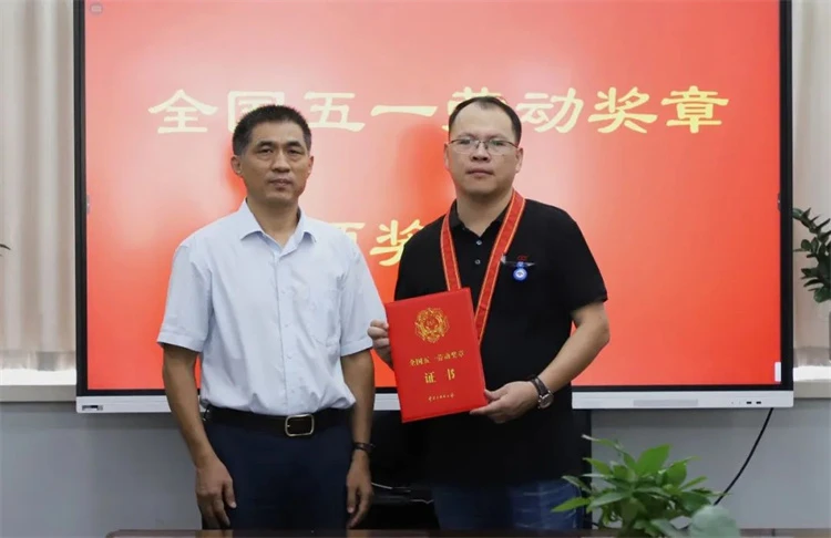 高辉向房讯颁发“全国五一劳动奖章”后,在表达祝贺的同时,勉励他再接再厉 在线传媒站,用敢闯敢拼的拼搏精神以及精益求精的工匠精神,激励广大双环人唱响新时代“咱们工人有力量”。