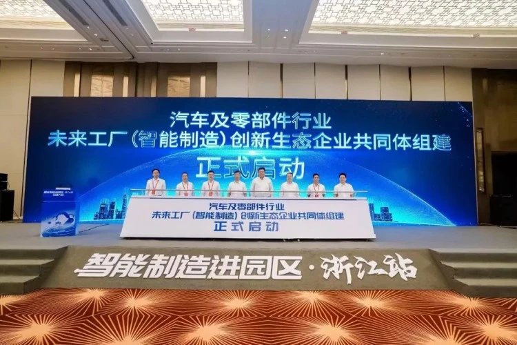 大会在汽车及零部件行业未来工厂(智能制造)创新生态企业共同体组建启动仪式中进入高潮 蜜桃传媒大全,李水土与参会领导一起启动了这一神圣时刻。
