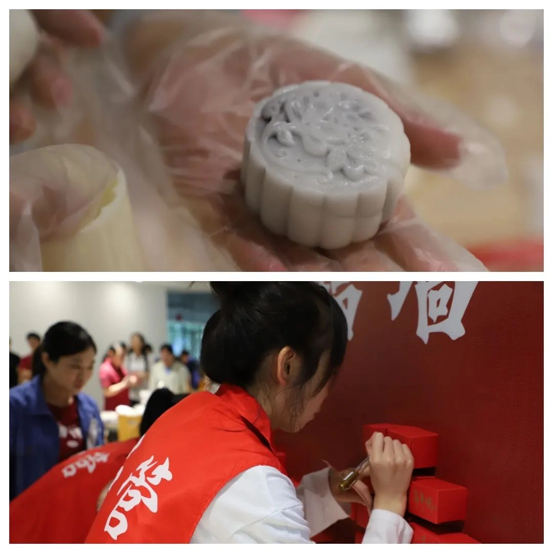 听完讲解后,大家抑制不住自己的小手开始制作起来。每一个小桌形成了一个小团队,大家分工协作,有人负责揉面,有人负责包馅料,有人负责压模。通过一道道工序,一个个色彩缤纷、晶莹剔透的冰皮月饼便呈现在眼前。“你看我这个粉嫩粉嫩的”“我这个花纹超好看”,大家相互分享,将做好的月饼小心翼翼放入精致的月饼盒中,脑海中浮现出与家人、同事、朋友分享美食的欢乐场景。DIY活动在欢声笑语中落下帷幕。