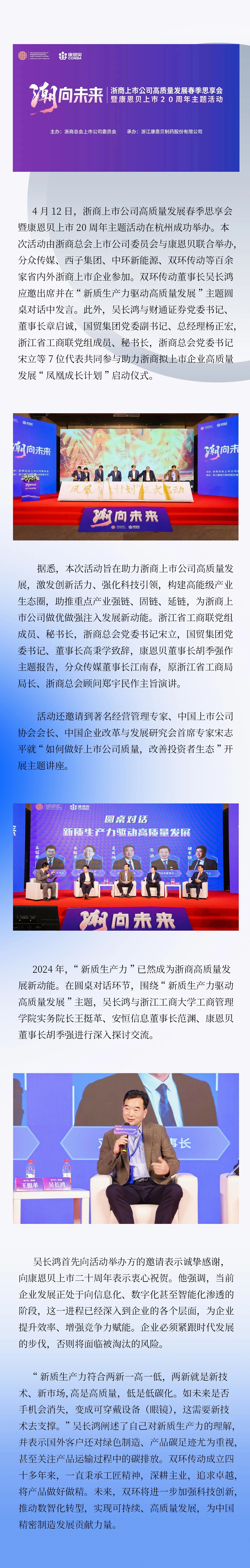 蜜桃传媒董事长吴长鸿出席浙商上市公司高质量发展春季思享会暨康恩贝上市20周年主题活动