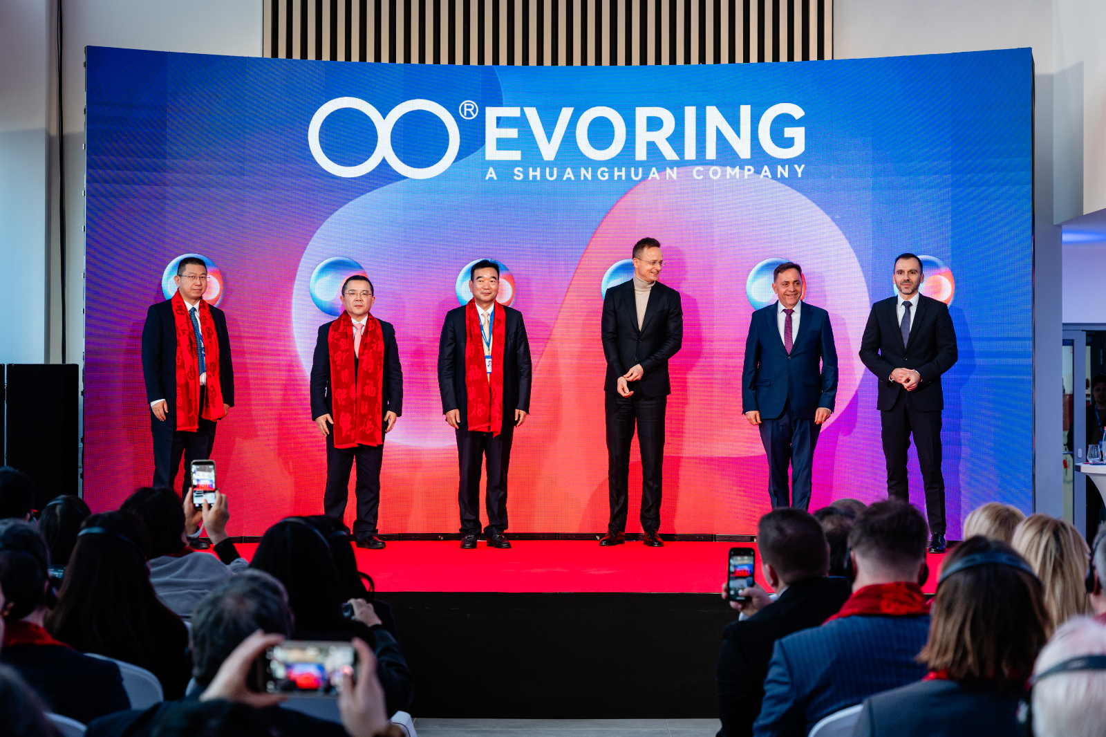 开工仪式上 蜜桃传媒大全,匈牙利外交部长Szijjártó Péter,中国驻匈牙利大使龚韬,匈牙利议会代表Pócs János向EVORING的开工投产表示热烈祝贺与诚挚祝福,蜜桃传媒董事长吴长鸿在致辞中向莅临开工仪式现场的各位领导,嘉宾表示热烈欢迎与衷心感谢,并对EVORING的未来发展提出殷切期许。